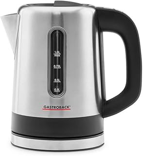 Gastroback 42435 Design Wasserkocher Mini, 1 Liter Edelstahl-Behälter mit Füllstandsanzeige, beleuchtetes Bedienfeld, Warmhaltefunktion, 2.200 Watt, 18/8