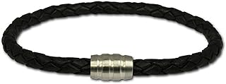 Lederarmband geflochten 5mm schwarz 21cm mit Edelstahl Magnet Verschluss für Damen oder Herren Leder Armband Echtleder LS1502