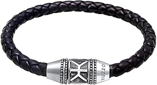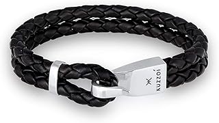 Herren Lederarmband, Edelstahl Leder Armband Armreif Manschette Seil Schwarz Silber Geflochten mit Verlängerung Magnet Schließe Verschluss Herrenarmband