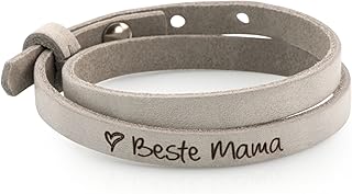 Lederarmband - hellgrau doppelt gewickelt, mit Wunschmotiv und Wunschtext, Armband mit Gravur