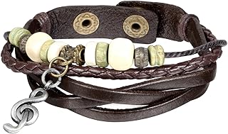 Schmuck Armband, Leder Legierung Holz, Musiknote Notenschlüssel Beads Kugeln Geflochten Lederarmband Partnerarmband, Armreif für Damen und Herren, Schwarz Braun