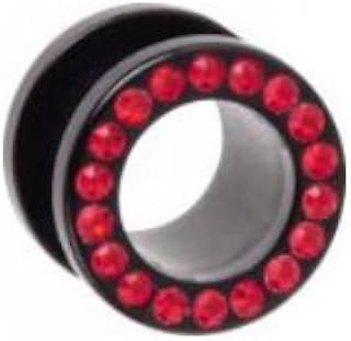 Ohr Flesh Acryl Tunnel Piercing Schwarz Screw On Mit Roten Kristallen VTFTBKJ.LSI.6mm