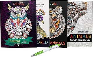 Malbücher für Erwachsene mit Tiermotiv für Stress und Entspannung | Malbücher mit Natur- und Tiermotiven (4 Stück) gratis Stift