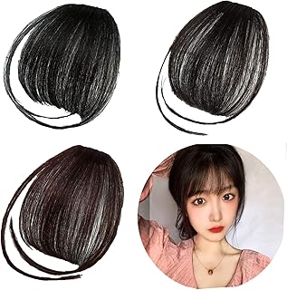 Pony Haarteil Pony Haarteil Echthaar Dunkelbraun Pony Fringe Clip-in Pony Haarverlängerung Natürlicher Glatter Pony-Clip für Damen Air Bangs Perückenstück für Alltag Cosplay Jeden Anlass Geeignet