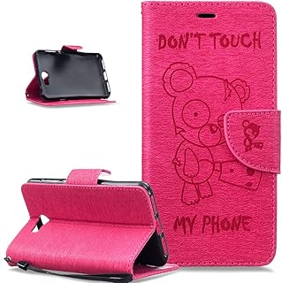Kompatibel mit Huawei Y5 II Hülle,Huawei Y5 II Schutzhülle,Prägung Kettensägen Bär PU Lederhülle Flip Hülle Cover Stand Ständer Karten Slot Wallet Tasche Case Schutzhülle für Huawei Y5 II,Heißes Rosa