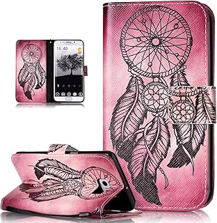 Kompatibel mit Galaxy S6 Hülle,Galaxy S6 Schutzhülle,Bunte Gemalt Muster PU Lederhülle Flip Hülle Cover Schale Ständer Etui Karten Slot Wallet Tasche Case Schutzhülle für Galaxy S6,Feder Campanula