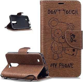 Kompatibel mit LG K10 Hülle,LG K10 Schutzhülle,LG K10 Leder Hülle,Prägung Kettensägen Bär PU Lederhülle Flip Hülle Cover Stand Ständer Etui Karten Slot Wallet Tasche Case Schutzhülle für LG K10,Braun