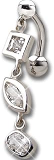 Bauchnabel Piercing Schmuck - Crystal Belly Line "Long Pendant" mit Kristall Zirkonia - Chirurgenstahl / 925 Sterling Silber - Von INTERNATIONAL CONNECTION