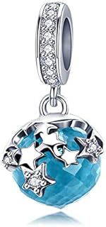 Anhänger aus 925er Sterlingsilber, blauer Kristall, mit Zirkonia-Stern, zum Aufhängen, passend für Pandora-Armbänder und Halsketten