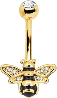 Bauchnabel-Piercing, 14 g, 316L Chirurgenstahl, zierlicher Bienen-Bauchnabel-Piercing mit gelbem Epoxidharz, klare Zirkonia, Bauchnabel-Piercing, Körper-Piercing-Schmuck