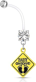 Schwangerschaftspiercing Bio Flex Flexibler Kunststoff kürzbar Baby on Board Zirkonia Kristall Bauchnabel-Piercing