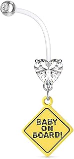 Schwangerschaftspiercing Bio Flex Flexibler Kunststoff kürzbar Baby on Board Herz Zirkonia Kristall Bauchnabel-Piercing