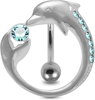 Bauchnabel-Piercing, Motiv: Delphin Around Navel, 925er Sterlingsilber,