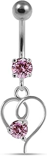 Bauchnabel-Piercing mit rosafarbenem Zirkoniastein, Herzform, 925er Sterlingsilber, Schmuck
