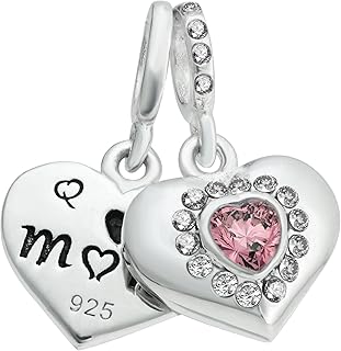 Charm-Anhänger aus 925er-Sterlingsilber mit Aufschrift "Mum & Daughter", Herzform, Zirkonia, europäischer Stil