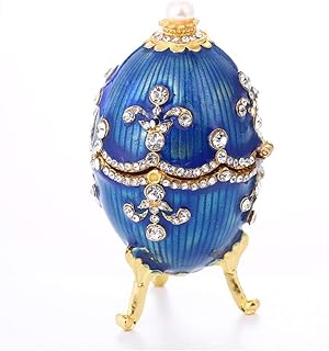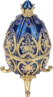 HERCHR Emaillierte Faberge Ei dekorative Schmuckschatulle Vintage Osterei Schmuck Organizer Trinket Box Einzigartiges Geschenk für die Inneneinrichtung, Sammlerstück(Blau)