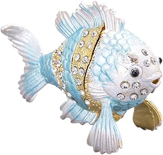 YU FENG Schmuckkästchen mit Kristallen besetzt, süßer Goldfisch, mit Scharnier, Sammlerstück, Tierfiguren, kleine Aufbewahrungsbox für Schmuck, Schätze