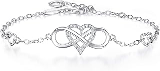 Armband Damen 925 Sterling Silber Unendlichkeit Armbänder Infinity Liebe Symbol Herz Zirkonia Armbänder Verstellbarer Charm Armband für Frauen und Mädchen mit Geschenkbox