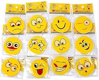 Schramm® 12 Stück Radiergummi Lachgesicht 4,5 cm 12 Motive Radier Gummi Rubber Radierer Tombola Schulbedarf Mitgebsel Kindergeburtstag