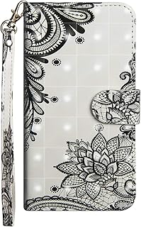 Hnzxy für iPhone 8 / iPhone 7 Hülle Handyhülle 3D Luxus Muster Schutzhülle PU Leder Hülle Brieftasche Flip Case Bookstyle Wallet Tasche Case Magnet Kartenfach für iPhone 8,Schwarze Blume