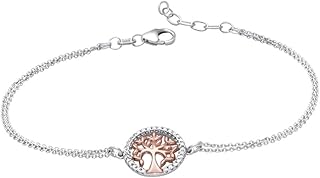 MATERIA Damen Mädchen Zirkonia Armband Lebensbaum Armkette Rosegold 925 Silber 17-19cm verstellbar #SA-71