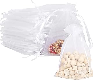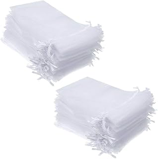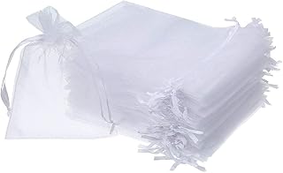 100 Stück Geschenkbeutel Beutel, Organza Taschen, Organza-Taschen mit Kordelzug, Transparent 7 x 9 cm Organza Schmuckbeutel mit Kordelzug für Schmuck, Hochzeit, Weihnachten, Geburtstag (Weiß)