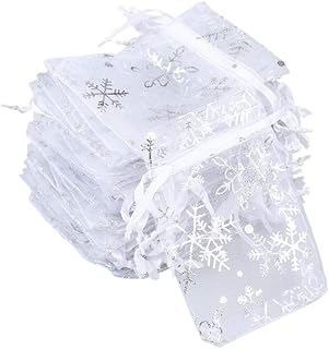 Organza-Beutel mit Schneeflocken, 7 x 9 cm organzasäckchen, 100 Stück Organza-Geschenkbeutel mit Kordelzug für Weihnachten, Hochzeit, Schmuck Beutel