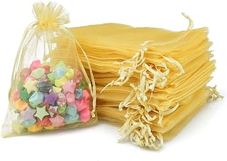 Organza Säckchen Klein 100tlg. Organza Beutel 7 x 9cm Organzasäckchen Gelb Schmuckbeutel mit Kordelzug Geschenk Säckchen für Hochzeit Gastgeschenke Fest Party