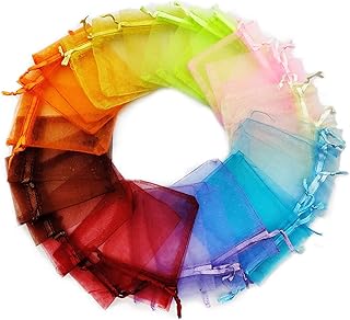 100 Stück Organzabeutel Klein 10 x 15 cm, Vegena Organza Säckchen Klein Organzasäckchen Kordelzug 5 Farben für Schmuckbeutel Hochzeit Säckchen Beutel Geschenk Fest Party