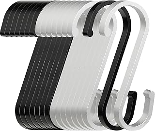 S Haken, 16 Stück S-förmige Haken, 8 Schwarz S Haken und 8 Silber S Haken, Anti Rost S Haken für Küche, Bad, Schlafzimmer, Büro und Garten