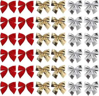 DECARETA 72 Stück Weihnachtsschleifen Gold/Silber/Rot Weihnachtsbaum Schleifen Deko Tannenbaum Weihnachtsbaumschmuck Christbaumschmuck Schleifen Weihnachten Zierschleifen für Weihnachtskranz Geschenk