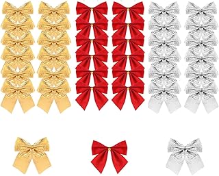 60 Stück Schleifen Weihnachten Klein Schleifen Weihnachtsbaum Schleifen Christbaumschmuck Schleifen Tannenbaum Weihnachtsschleife Weihnachtsbaum Bogen Schleife Als Hängende Deko Rot Gold Silber