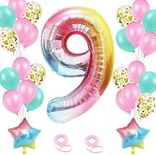 Luftballon 9. Geburtstag Rosa,Kindergeburtstag Deko Mädchen 9 Jahr Ballons,Riesen Bunt Folienzahlen Ballons,Geburtstagsdeko 9 Jahr Mädchen