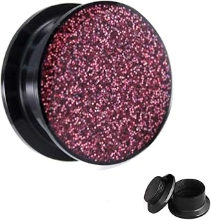 | Glitter Ohr Plug - ROSA/PINK - 16 Größen: 3mm - 30mm | mit Gewinde - Double Flare Schwarz - Piercing Flesh Tunnel Plug mit Glitzer aus schwarzem Kunststoff/Acryl zum Schrauben
