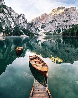 Malen nach Zahlen für Erwachsene oder Kinder, Ölgemälde für Anfänger, buntes Leinwandgemälde, Wandkunst, Zeichnung mit Pinseln, 40 x 50 cm, Dekor-Geschenke (Lake Boot, rahmenlos)