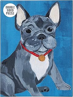 Talking Tables 100-teiliges blaues doppelseitiges französisches Bulldoggen-Hundepuzzle & Poster | Illustrierte Haustiere, Tier | Für Kinder, Erwachsene, Hundeliebhaber, Geburtstagsgeschenk, Weihnachts