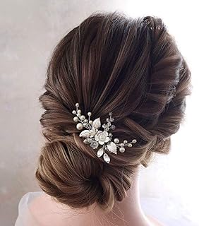 Unicra Braut Hochzeit Haarnadeln Blume Kopfschmuck Einfache Elegante Silber Haarschmuck für Frauen und Mädchen 2 Stück