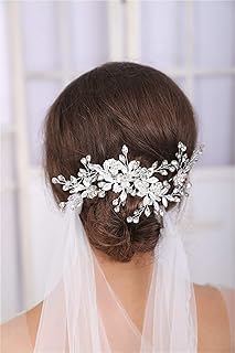 Simsly Kristall Haarkamm für Bräute Hochzeits-Haarschmuck Brautschmuck Kopfschmuck Blumen-Design mit Blättern Haarkämme für Damen und Mädchen(Silber)